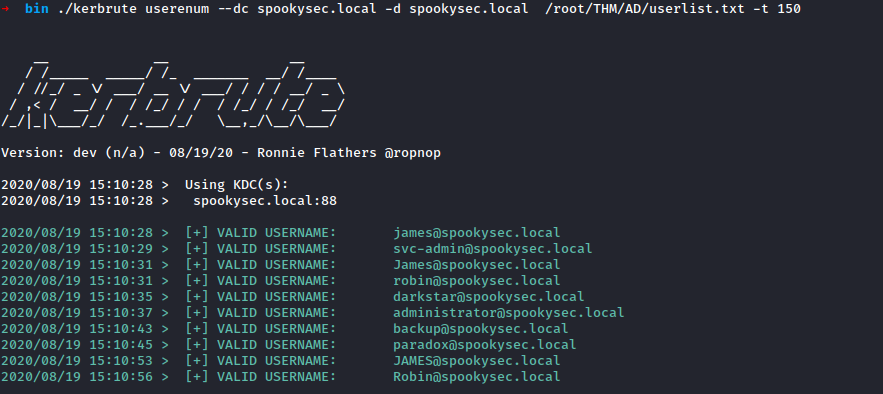 So I ran kerbrute to get potential real users in order to proceed to the next steps.