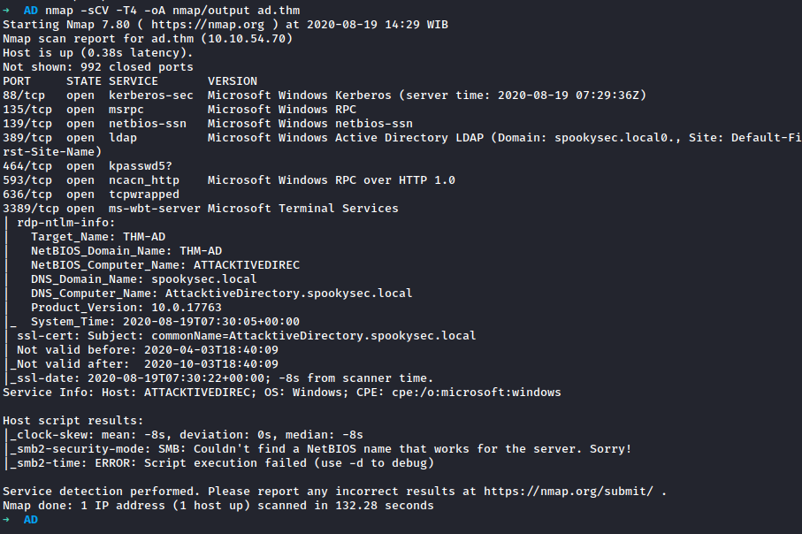 By seeing nmap’s result, there are port that used for Active Directory which is 389.