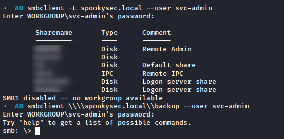 After getting the credentials of svc-admin, I decided to check shared file as svc-admin