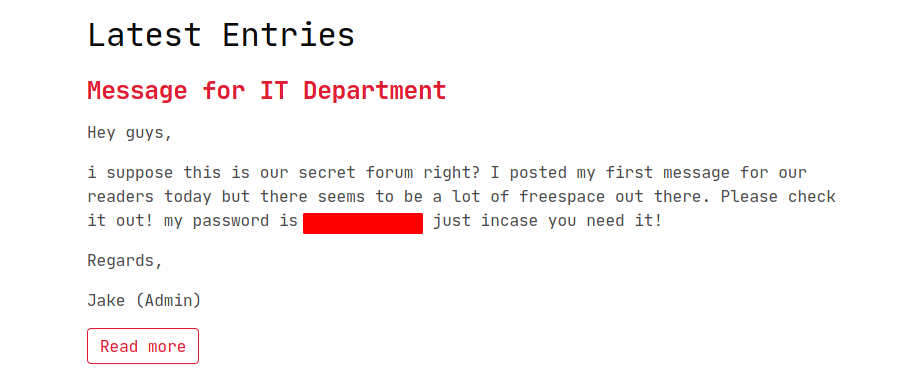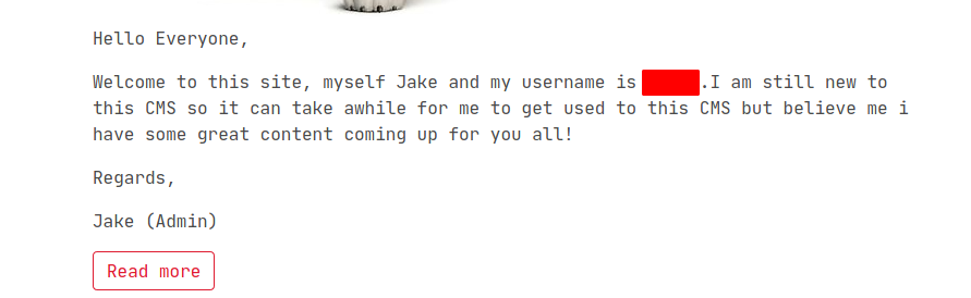 It redirects me to CMS site which has numerous of potential users, after looking around, I found the valid credentials.