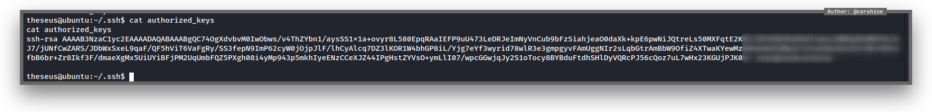 From the nmap results, it has port 22 opened and theseus has authorized_keys, so that I can add my ssh key to user theseus.