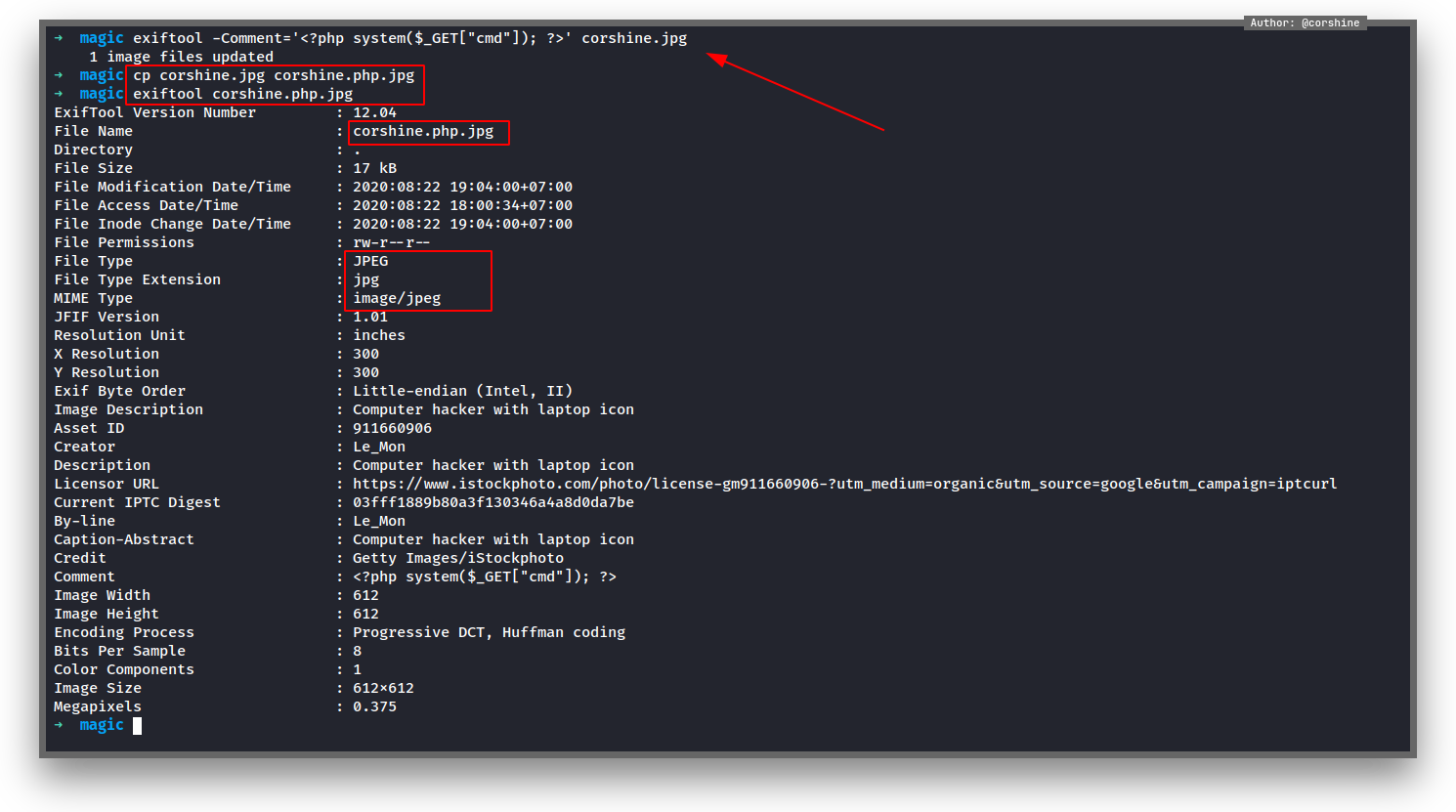 I found a medium article that was posting about image file upload and it uses exiftool to manipulate the metadata with php code of the default image.