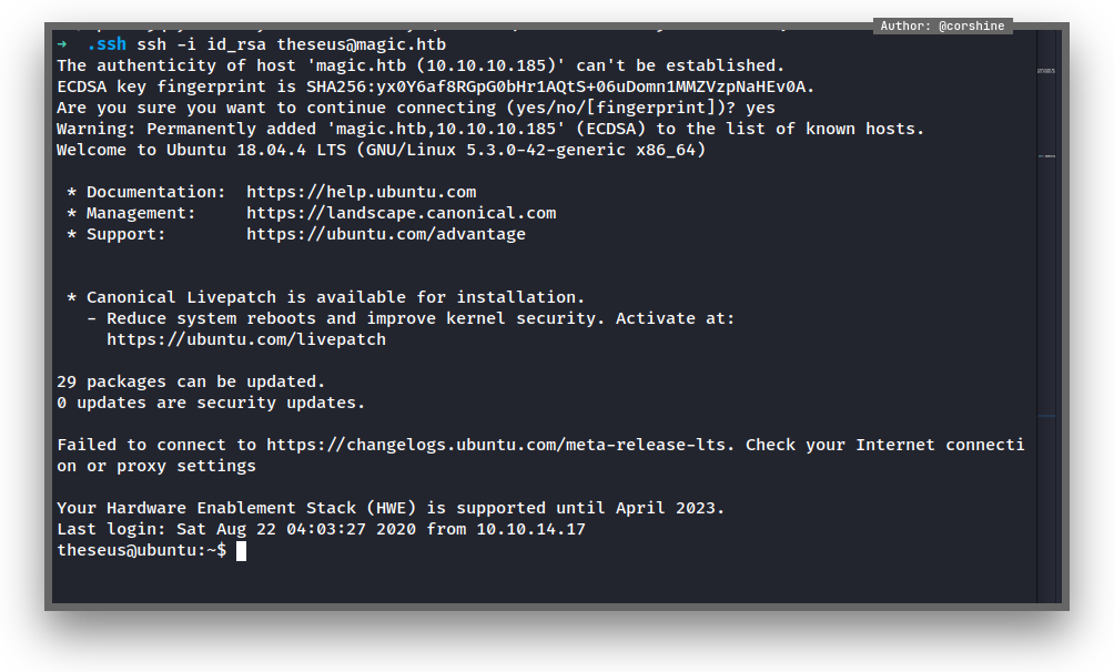 www-data@ubuntu:/dev/shm$ mysqldump Magic -u theseus -p