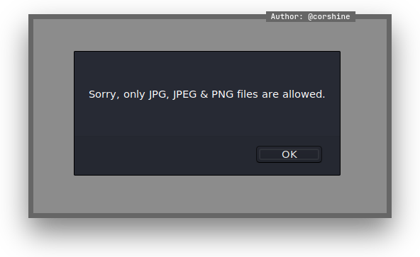 It redirects to image uploader with only jpg,X.png and jpeg` extensions that are available.