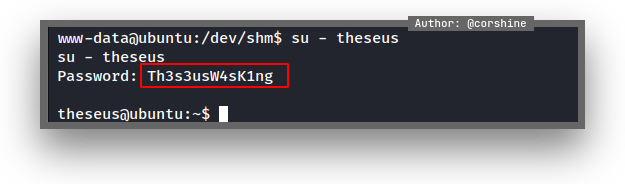 And I found a password from the database which is Th3s3usW4sK1ng, so I tried to get to high privilege user in order to get more authorities from the box which is theseus