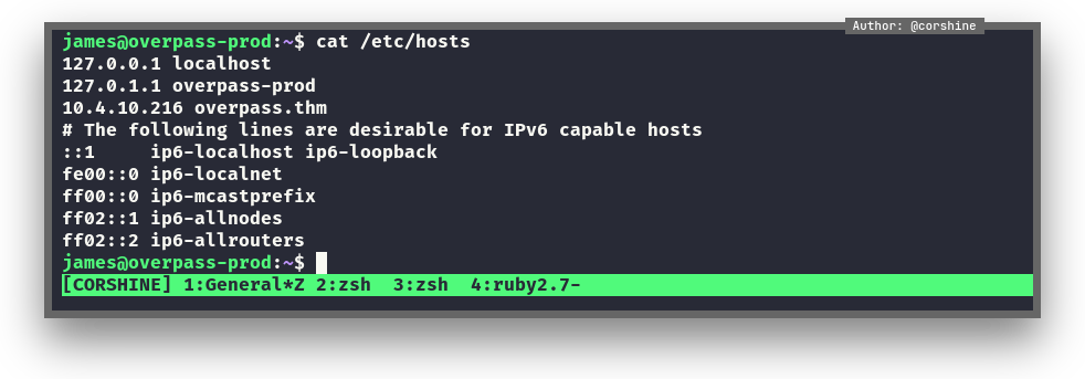 We can see the crontab is executing a particular script which leads to overpass.thm/downloads/src/buildscript.sh, and we are able to modify the /etc/hosts and change overpass.thm to our tun0 ip which let the machine downloads the file from our machine and execute.