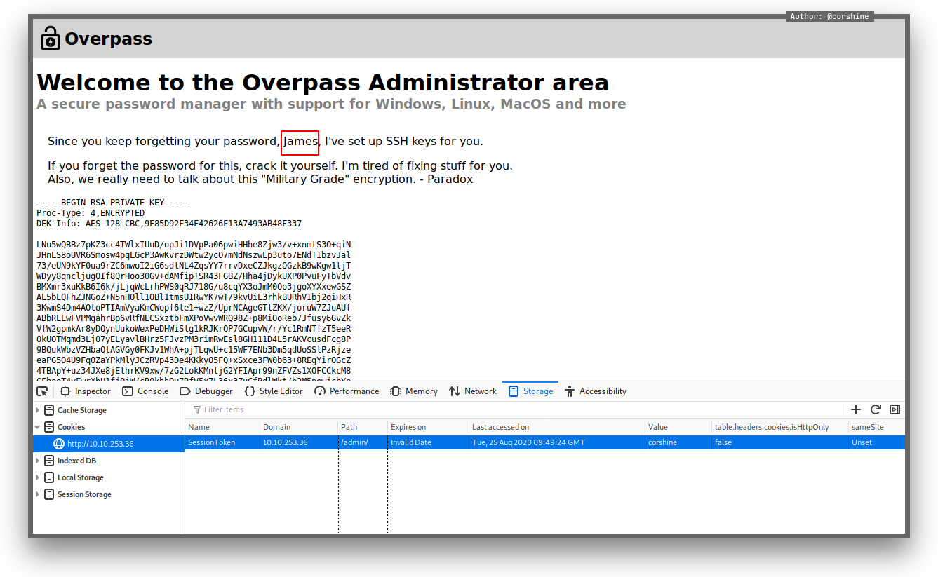 By refreshing the page, it shows us the private ssh keys of James.