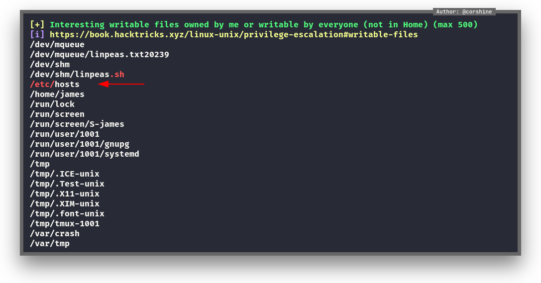 And surprisingly we have access to write /etc/hosts which usually only root user is able to do that.