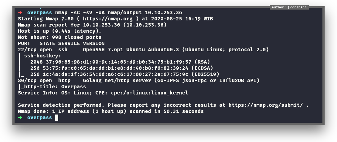 From the nmap scan, we found 2 ports are open, 22 as ssh and 80 that running golang http server.