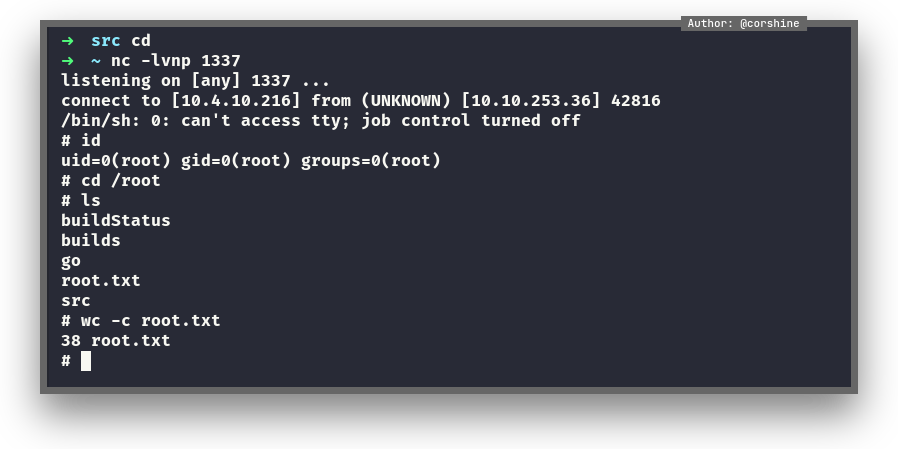 buildscript.shas reverse shell - Start the listener, and