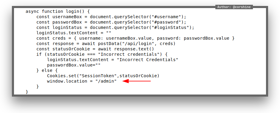 By looking at the source code and click the javascript code that brings us to function which has a simple if else statements, its checking for a cookie that called SessionToken, so I figured it out just by creating a cookie and give any random value, we will get something from the page.