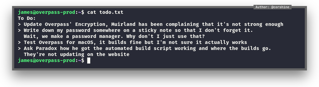 Also there is todo.txt, so lets cat it out.