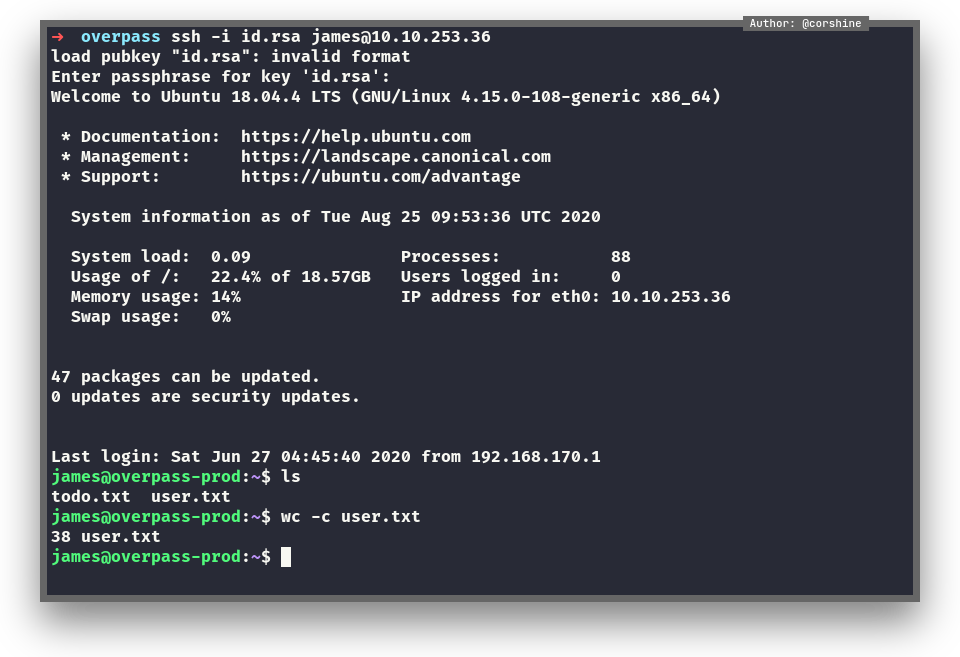 So we try to get in as James and now we can read user.txt.