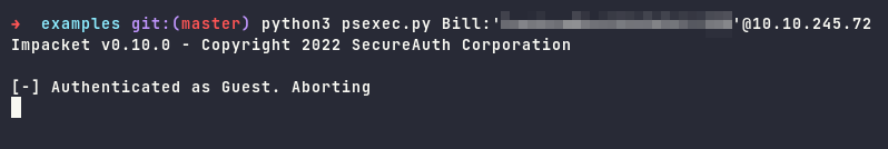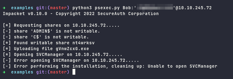 Having these credentials, we can attempt to use it to the target, using psexec to check which users is valid.