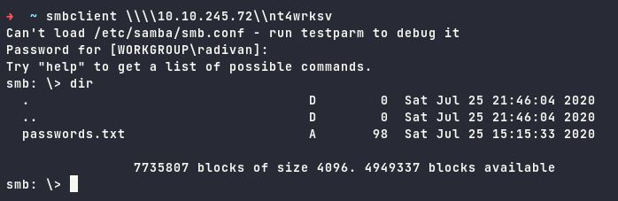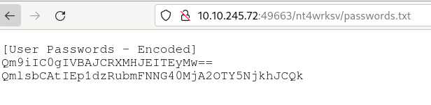 To validate that we are on the right path, try add passwords.txt that we found on SMB before.