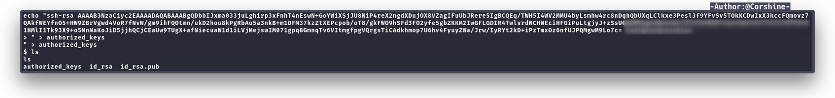 And now we need to echo the public key to authorized_keys, so we can login directly to d4rckh without password.