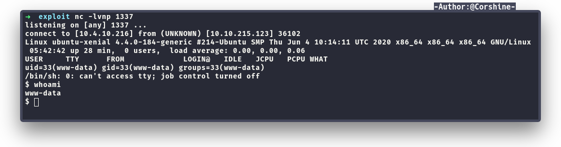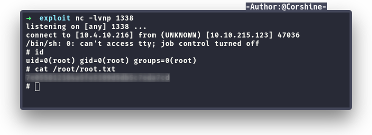 Wait for a while and the listener finally responded with root shell.
