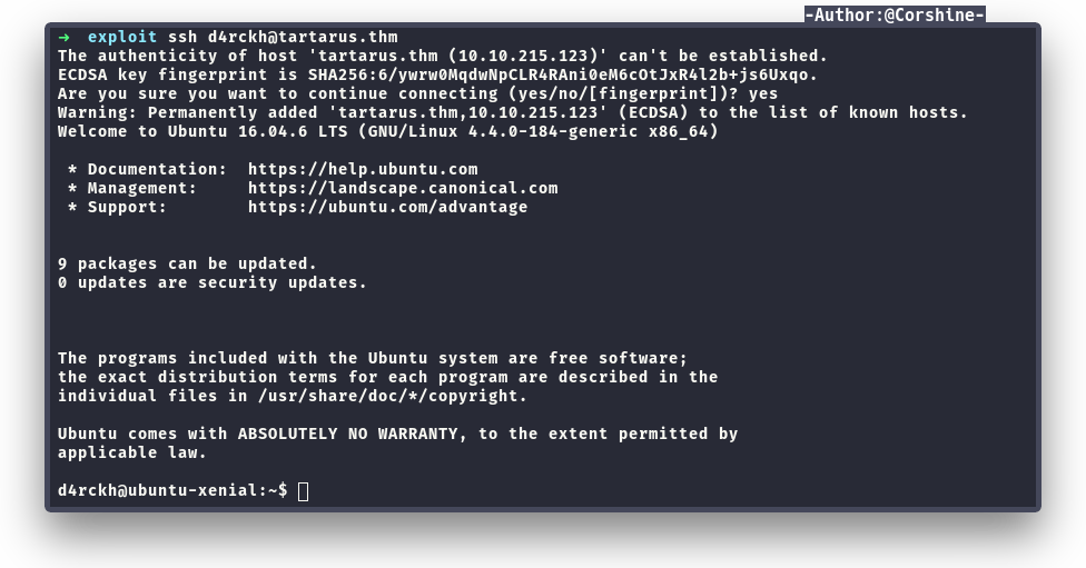 Now let’s try to ssh as d4rckh.