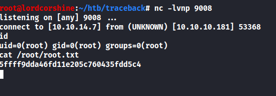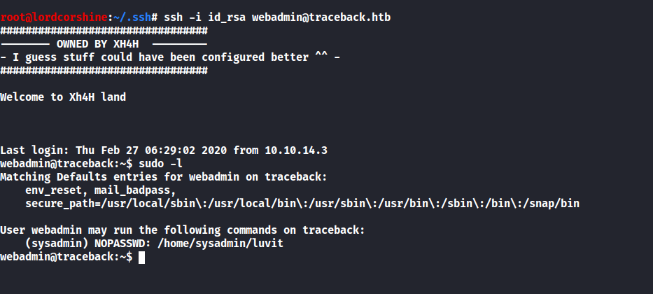 root@lordrhovelionz:~/htb/traceback# scp -i ~/.ssh/id_rsa nc sysadmin@traceback.htb:/tmp